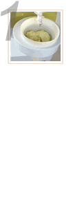 Hold a cone or other serving container at the bottom of the bowl and, with your other hand, press the "Blend" (White) button for about 6 seconds.